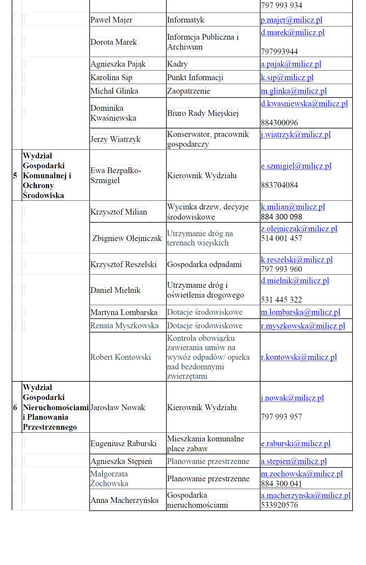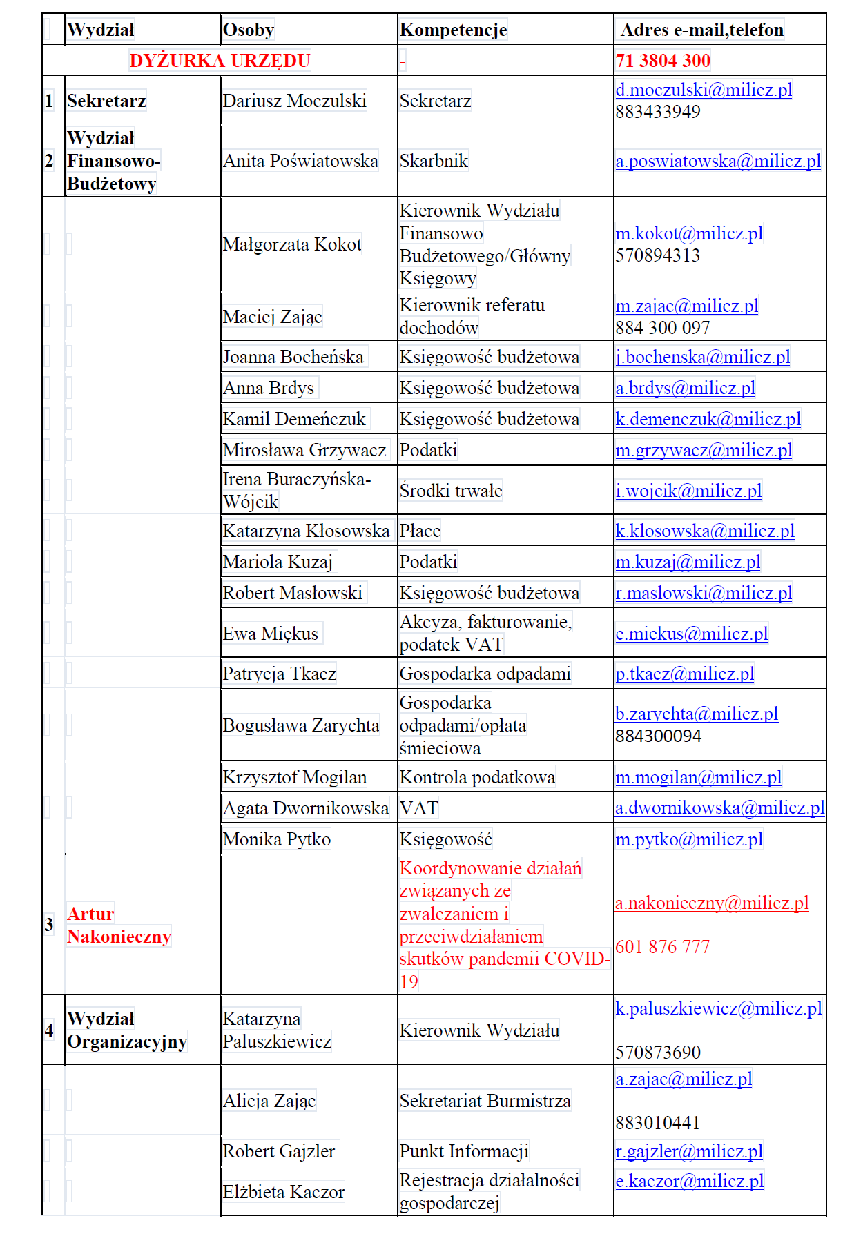 Wszystkie adresy mailowe i kontakty służbowe:adresy e-mail+ telefony-