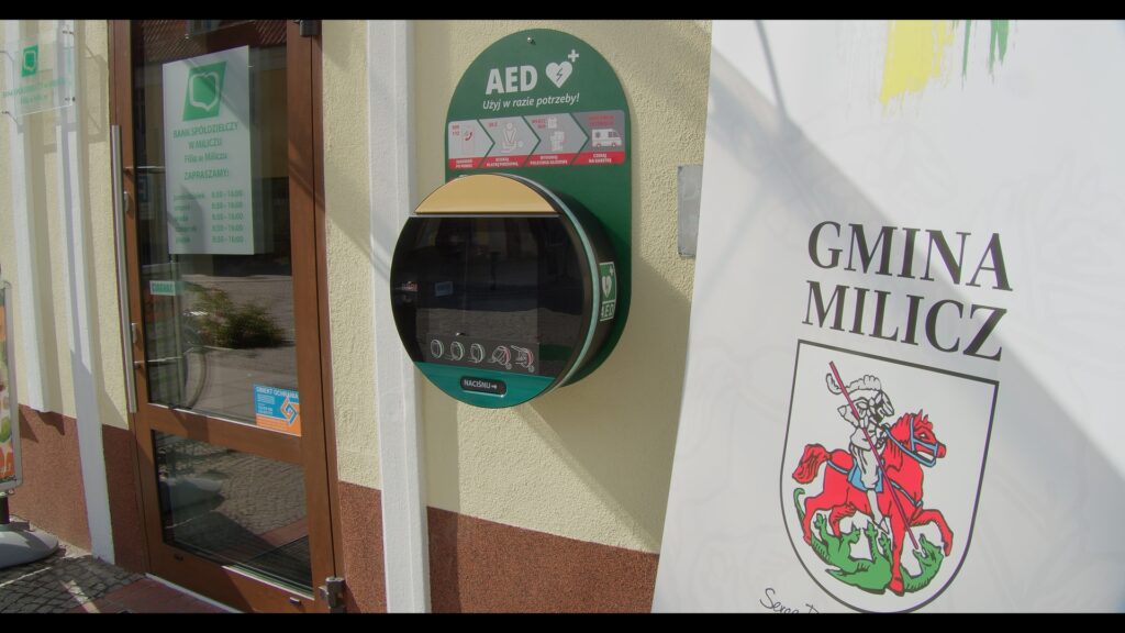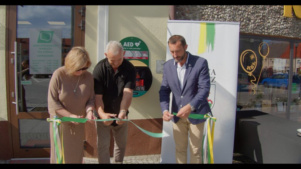 Burmistrz Wojciech Piskozub symbolicznie przekazał urządzenie na ręce prezes Banku Spółdzielczego w Miliczu Katarzyny Wencek, a następnie AED zostało umieszczone w specjalnej skrzynce przy wejściu do banku. Od tej pory punkt z AED dostępny jest całodobowo.