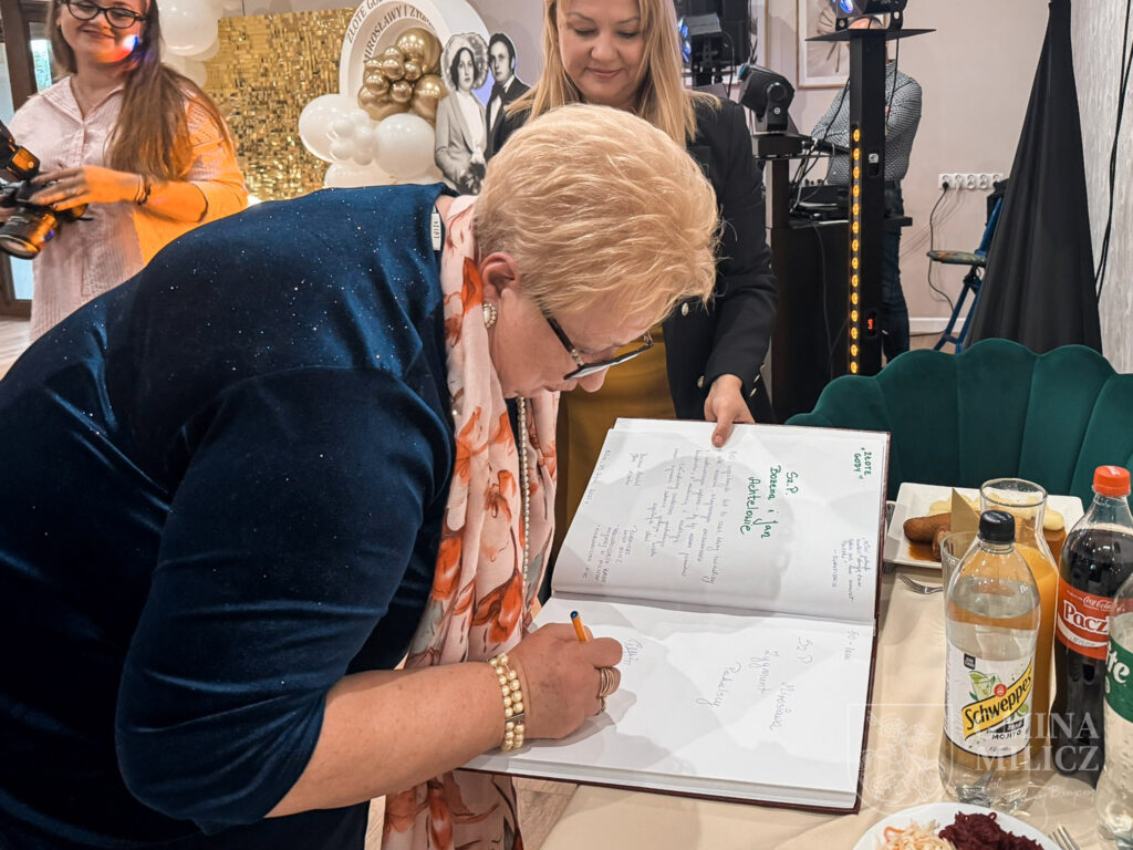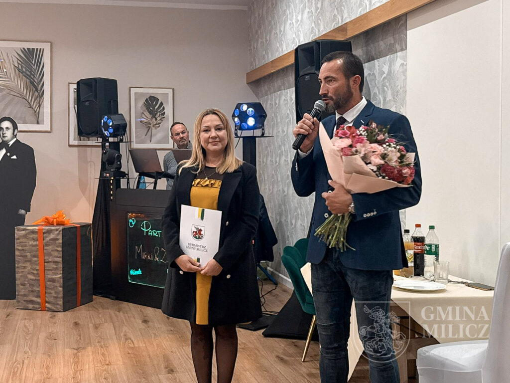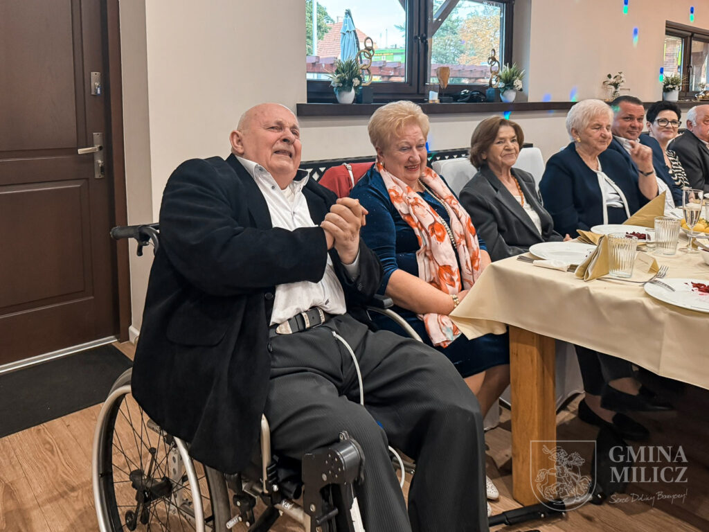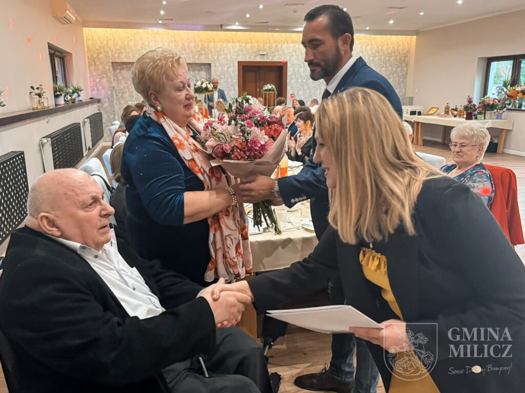 W uroczystości uczestniczyli również Burmistrz Gminy Milicz Wojciech Piskozub oraz Zastępca Kierownika Urzędu Stanu Cywilnego Wioletta Owczarek, którzy złożyli Jubilatom serdeczne gratulacje i życzenia dalszych lat spędzonych w zdrowiu, szczęściu i wzajemnej miłości. Burmistrz wręczył także okolicznościowy list gratulacyjny oraz bukiet kwiatów podkreślając, że są pięknym przykładem trwałego i zgodnego związku, stanowiącego wzór dla wielu, w tym także dla młodego pokolenia mieszkańców naszej gminy.