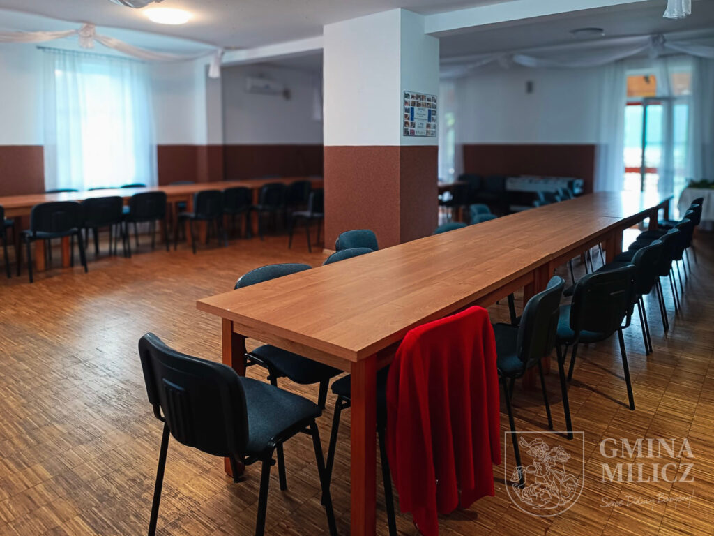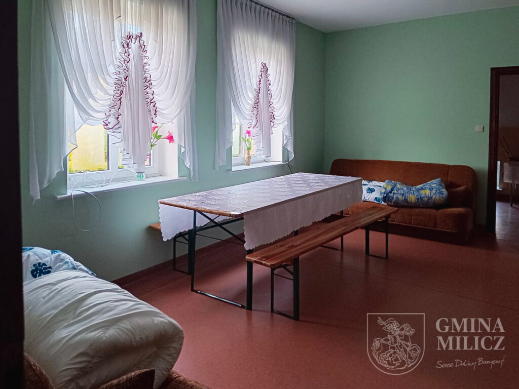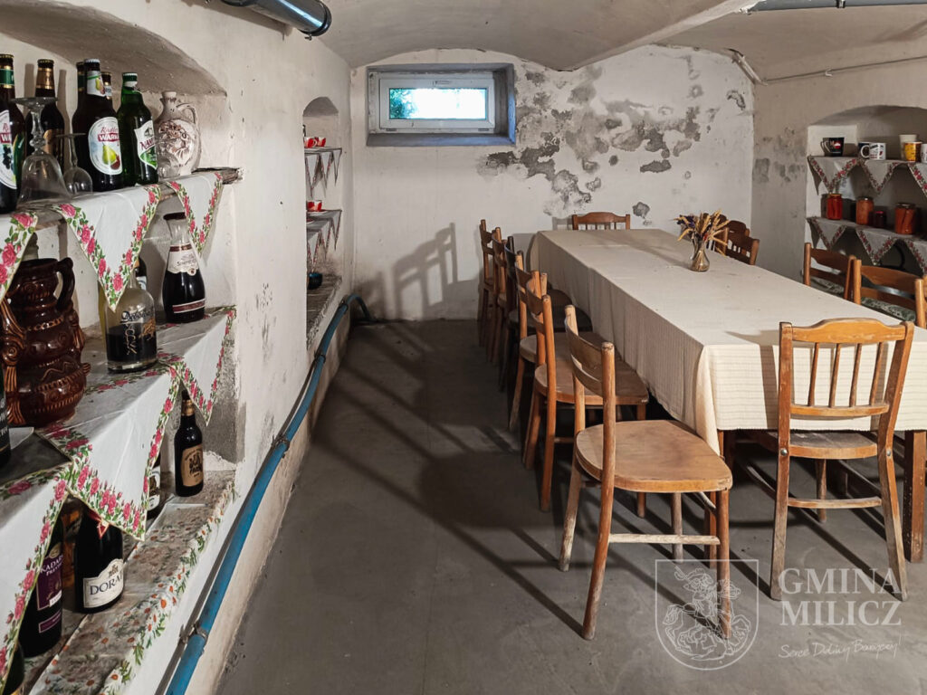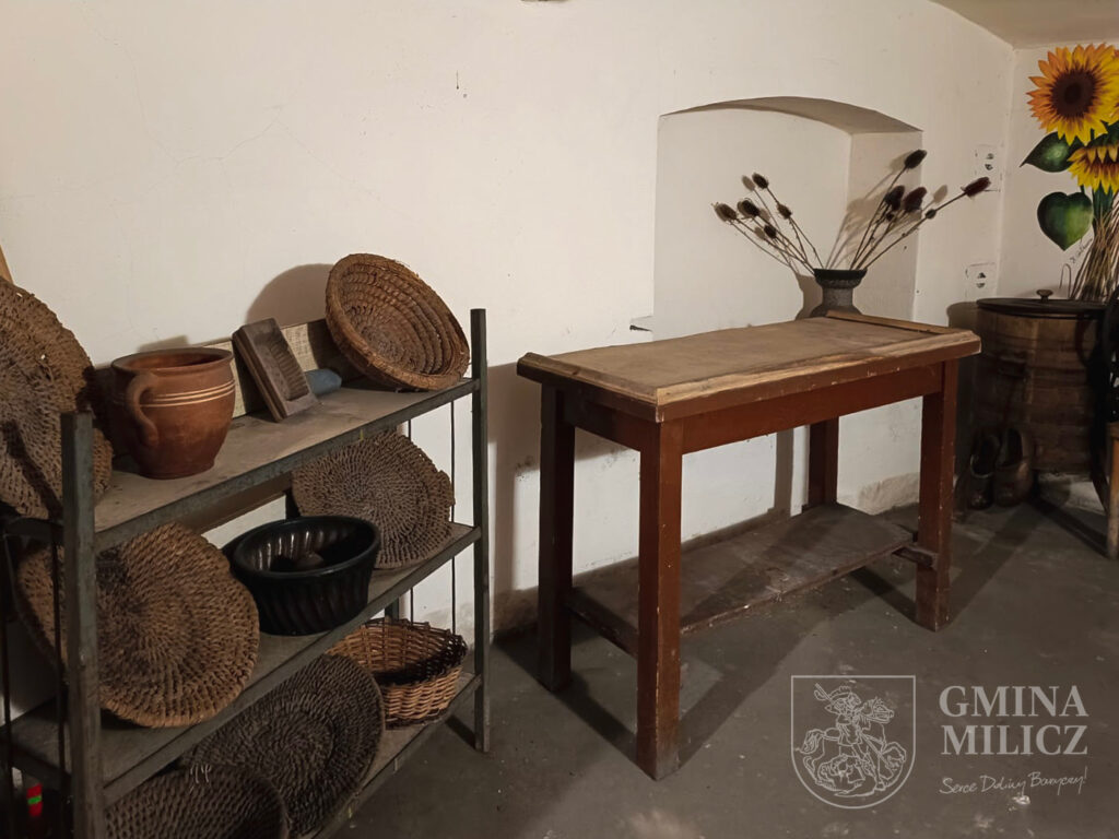 Prawdziwy skarb kryje się jednak w piwnicy budynku – oryginalny, starodawny piec chlebowy, obecny tu od początku istnienia gmachu. Piec ten wykorzystywany jest podczas cyklicznych warsztatów pieczenia chleba, organizowanych wspólnie z Ośrodkiem Kultury w Miliczu. Ostatnie takie spotkanie odbyło się miesiąc temu w ramach projektu „Wiejski Warsztat – dziedzictwo żywe, dostępne, cyfrowe”. Mieszkańcy upiekli wówczas aż 20 bochenków chleba na zakwasie, pod okiem prowadzącego Piotra Zduńskiego. W sąsiedztwie pieca znajduje się także mały skansen dawnych naczyń, sala z długim stołem i półkami pełnymi domowych przetworów i nalewek – swoista podróż w czasie do dawnych, pachnących chlebem lat.