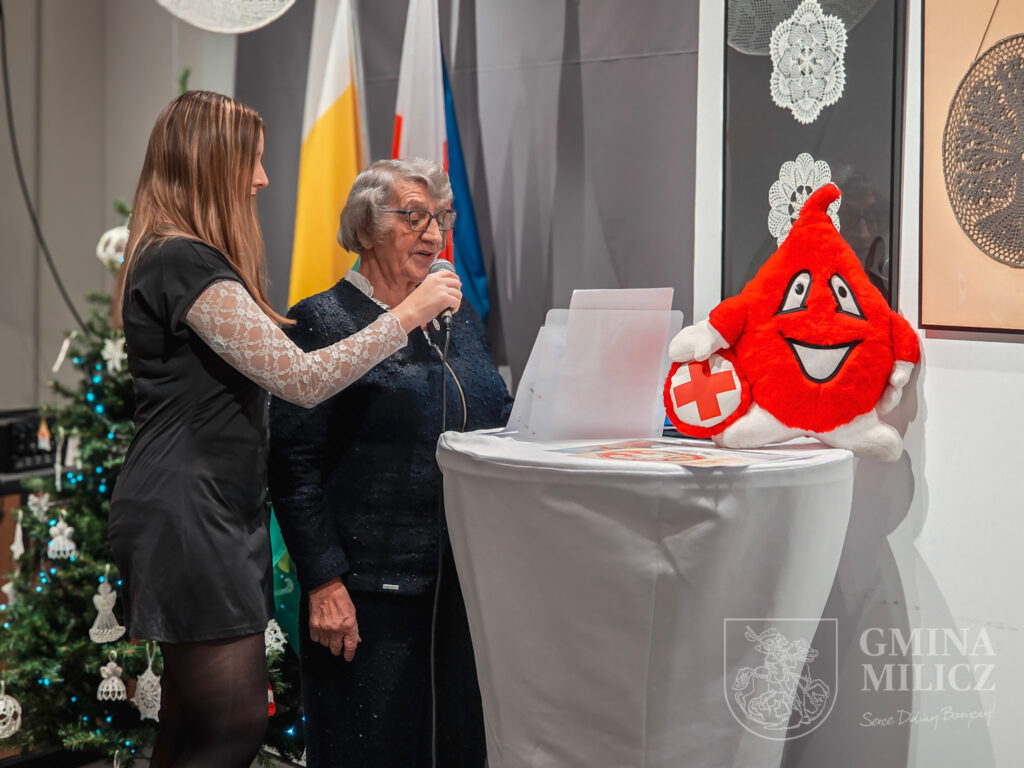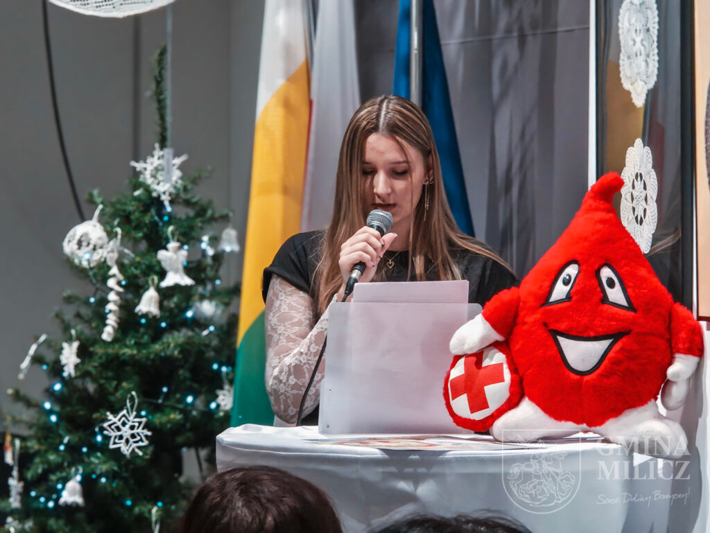Następnie głos zabrała Prezes Oddziału Rejonowego PCK w Miliczu, Anna Połubek, która z głęboką wdzięcznością podkreśliła znaczenie niesionej przez krwiodawców pomocy, nazywając ich dar serca jednym z najpiękniejszych przejawów ludzkiej solidarności.