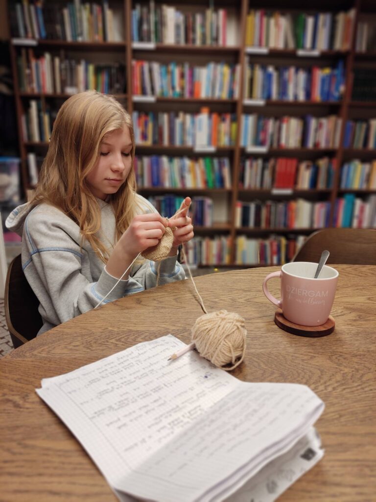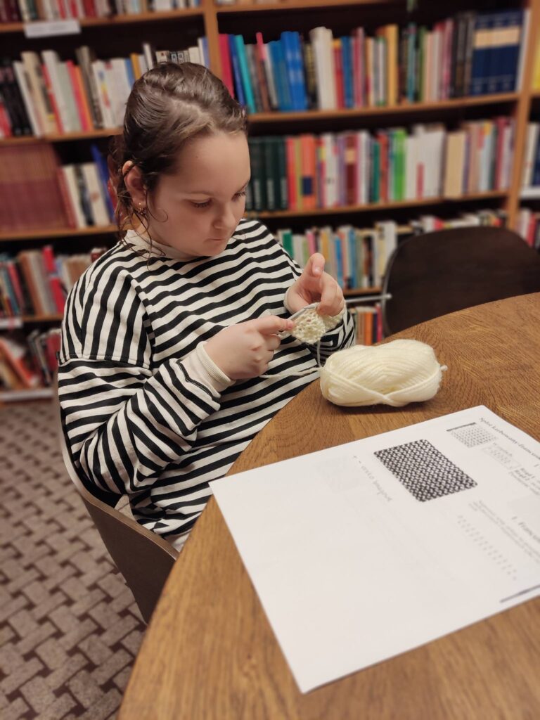 👉 Równolegle prowadzone były ćwiczenia z zakresu różnych technik dziewiarskich oraz wymiana doświadczeń pomiędzy uczestnikami zajęć.Zajęcia Klubu Robótek Ręcznych odbywają się w każdy poniedziałek i piątek o godz. 16:00 w czytelni Biblioteki Publicznej w Miliczu. Spotkania przeznaczone są dla osób zainteresowanych robótkami ręcznymi.