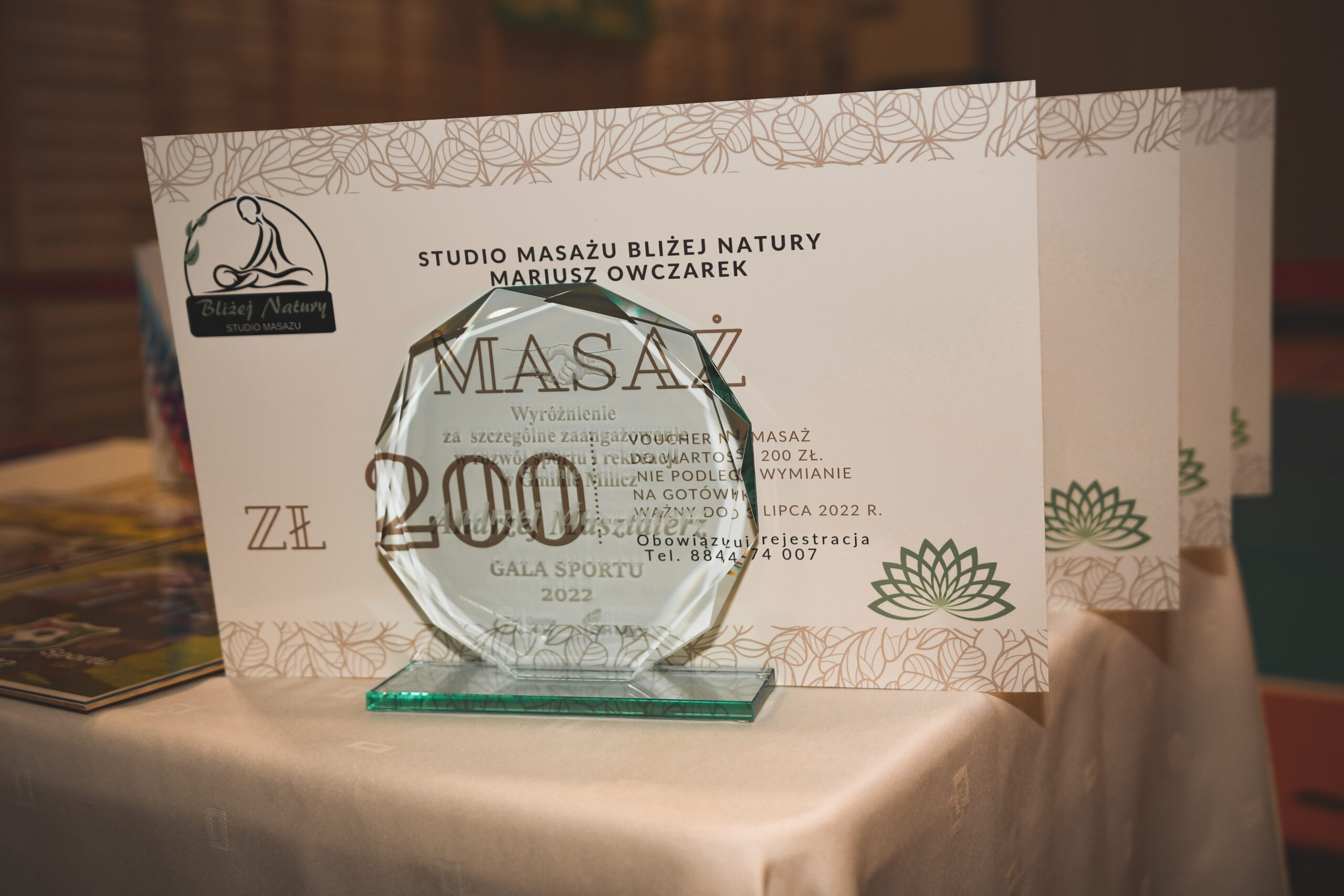 Wyróżnieni przedstawiciele w kategorii „Przyjaciel milickiego sportu 2022” otrzymali również bon na masaż ufundowany przez Mariusza Owczarka, właściciela Studia Masażu Bliżej Natury w Kaszowie pod Miliczem.