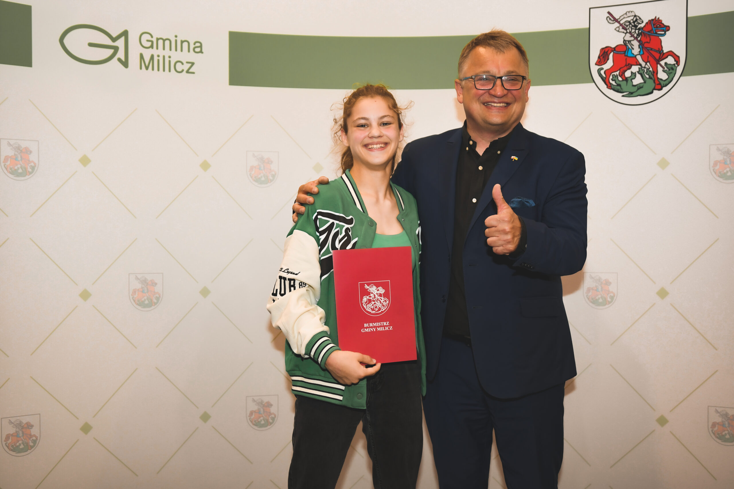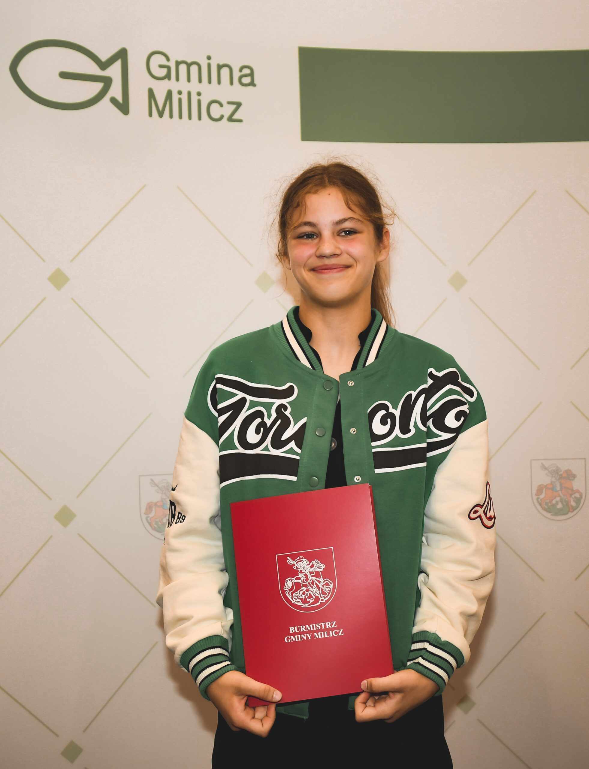 Stypendium sportowe Burmistrza Gminy Milicz przypadło wybitnej zawodniczce, która zdobyła najwyższe podium w Mistrzostwach Polski Młodziczek, w Międzynarodowym Turnieju Zapaśniczym Heros Lady Open, w Mistrzostwach Polski Ludowych Zespołów Sportowych Zuzannie Horbik z ULKS Bizon.